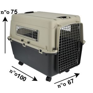 כלוב נסיעה על גלגלים לכלבים גדולים עם דלת מתכתית ופתחי אוורור. קל לנשיאה וניקוי, מידות: 75x67x100 ס"מ.